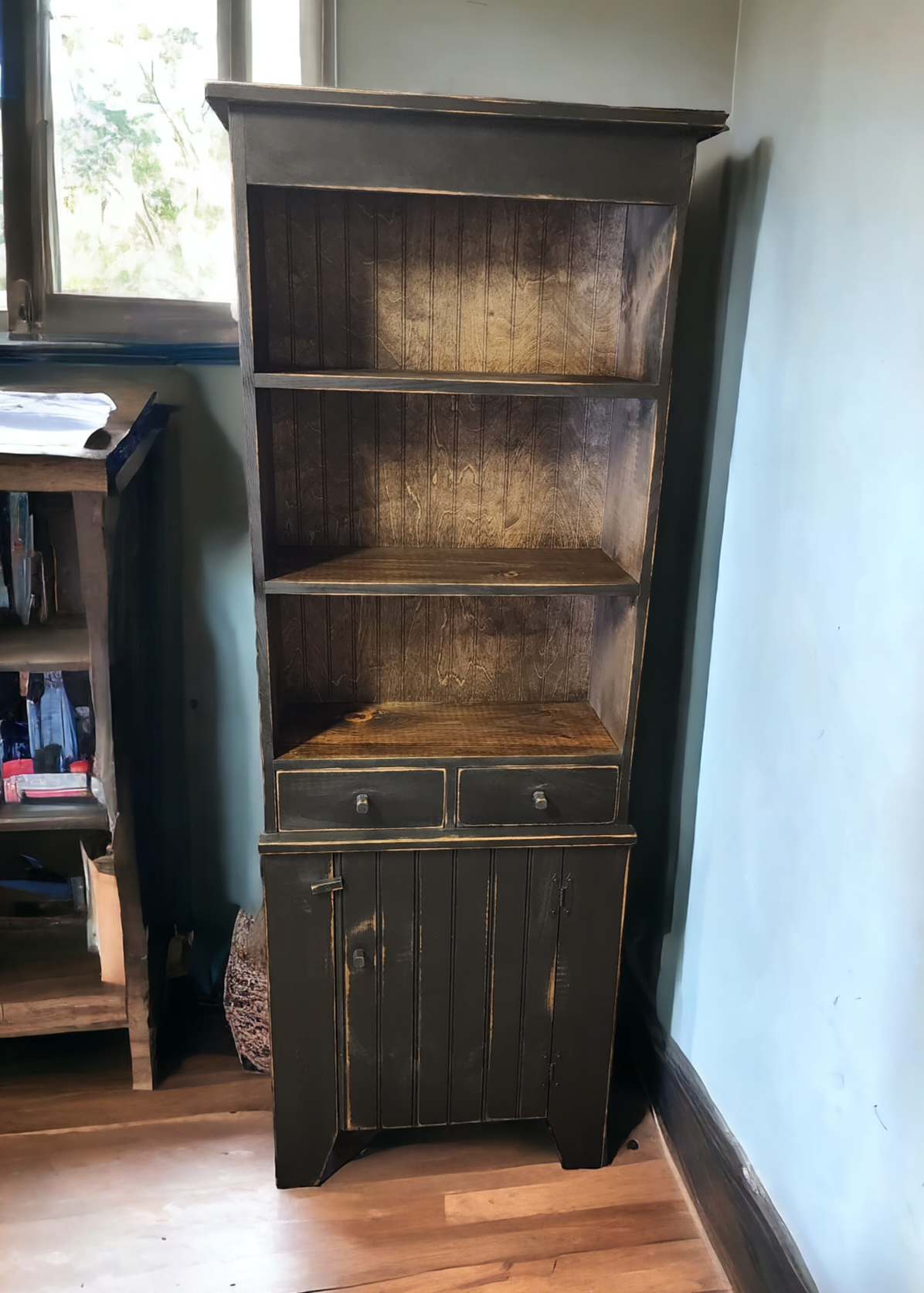 Rustic Handcrafted Bookcase, Primitive Style Hutch, Farmhouse Storage, Vintage Decor